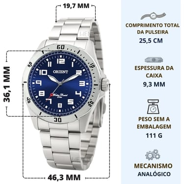 O Relógio Orient Masculino Analógico é a escolha ideal para quem busca elegância, durabilidade e excelente custo-benefício. Com design clássico e acabamento em aço inoxidável prateado, ele combina perfeitamente com ambientes formais e também com o uso diário.